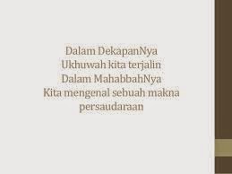 “Sesungguhnya engkau tahu bahwa hati ini tlah berpadu berhimpun dalam naungan cintaMu. Bertemu dalam ketaatan, bersatu dalam perjuangan, menegakkan syariat dalam kehidupan. Kuatkanlah ikatannya, kekalkanlah cintanya, tunjukilah jalan-jalannya. Terangilah dengan cahaya-Mu yang tiada pernah padam, ya Rabbi bimbinglah kami.
