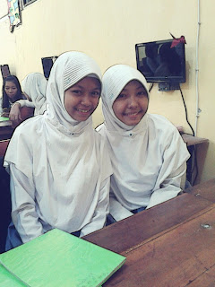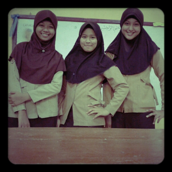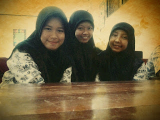 Barulah saat jalan satu semester, hidayah Allah SWT itu datang. Saat itu aku dan Melisa (dia adalah teman satu kost ku dan teman dari TPA ku hahaha kapan-kapan insyaallah ku ceritakan khusus tentang dia yaa) memutuskan untuk berhijab. Pemikiran mulanya memang konyol, karena kita sudah lelah dengan mengurus penampilan rambut yang super ribet itu. Selain itu juga yang pasti karena kita takut akan dosa yaa :D. Tapi saat itu aku bertekad dengan diriku sendiri, jika aku memutuskan akan berhijab, aku mau berhijab langsung dengan sesuai perintahNya (hijab Syar'i gitu maksudanya). Setelah membulatkan tekat, aku coba telpon ibuku dirumah untuk meminta izin aku berjilbab. Ibuku sih menyerahkan keputusannya padaku, beliau hanya menyanyakan berapa biaya untuk membeli seragam baru yang berlengan panjang. Mengingat jika aku berjilbab, ya berarti aku harus beli semua seragam baru dong ya. Besoknya aku langsung datang ke bagian keuangan yang mengurus masalah seragam, lumayan mahal dan butuh waktu yang lama ternyata untuk mendapatkan seragam barunya, karena seragam baru ada lagi nanti ketika masuk ajaran baru, itu berarti masih 1 semester lagi. Sudah agak hopeless saat itu, tapi aku beruntung ada teman yang menginatkan jika sudah ada niat baik harus di segerakan, hidayah tidak tau bisa datang kapan lagi. Saat kita sudah bertekad, ternyata guruku menginformasikan masih ada baju sisa tahun ajaran kemarin, bisa diambil hari senin dengan biaya X rupiah. Wah senang nya aku, tapi juga bingung, apa bapak bisa kasih uang segitu dalam waktu dekat. Bissmillah aku memberanikan diri dan mempersiapkan diri untuk merargumen dengan bapak (Fyi, aku harus mempersiapkan bahan argumen dulu setiap bicara sama bapak kalo mau ngomong dan di acc :)). Alhamdulillah ala kulli hal, Allah mudah kan semua prosesnya, dan memberikan kami rizki untuk membeli seragam baru. Singkat cerita aku sudah mulai berhijab, berikut beberapa dokumentasi yang sempat terabadikan :